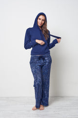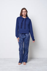 Long sleeve hoodie with kangaroo front pocket and contrast pulls